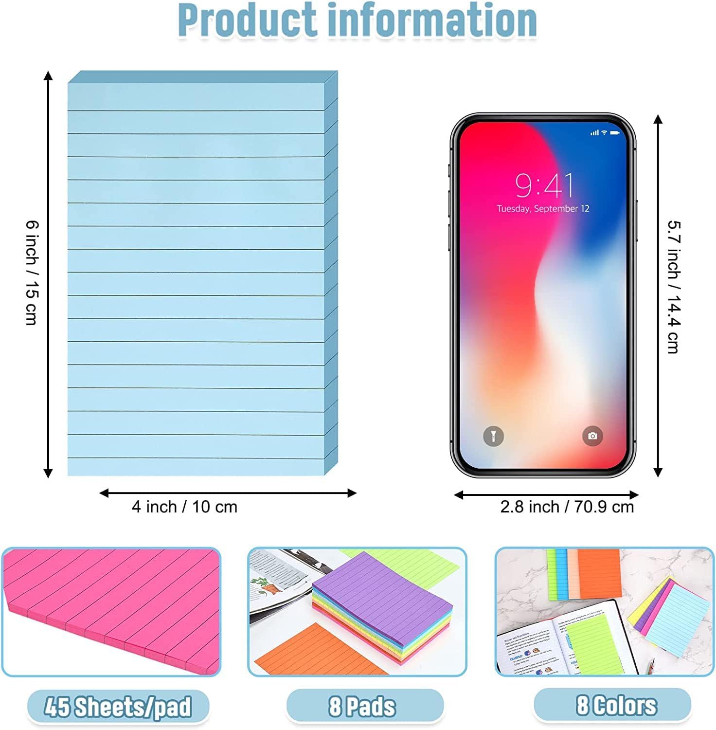 4″ x 6″ Sticky Notes, 8 Pads/Pack, 45 Sheets/Pad.