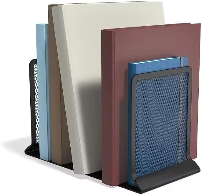 These metal hollow-out bookends keep your magazines, books, catalogs, and binders neatly organized and visible on bookshelves. Made from premium, rust- and corrosion-resistant metal, they are both sturdy and durable. The creative art design with a powder-coated surface adds a decorative touch without adding visual bulk. Ideal for home, office, or library use, these bookends provide a practical, anti-skid solution to keep books and files upright and your space tidy.